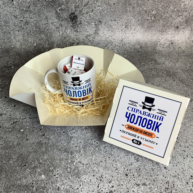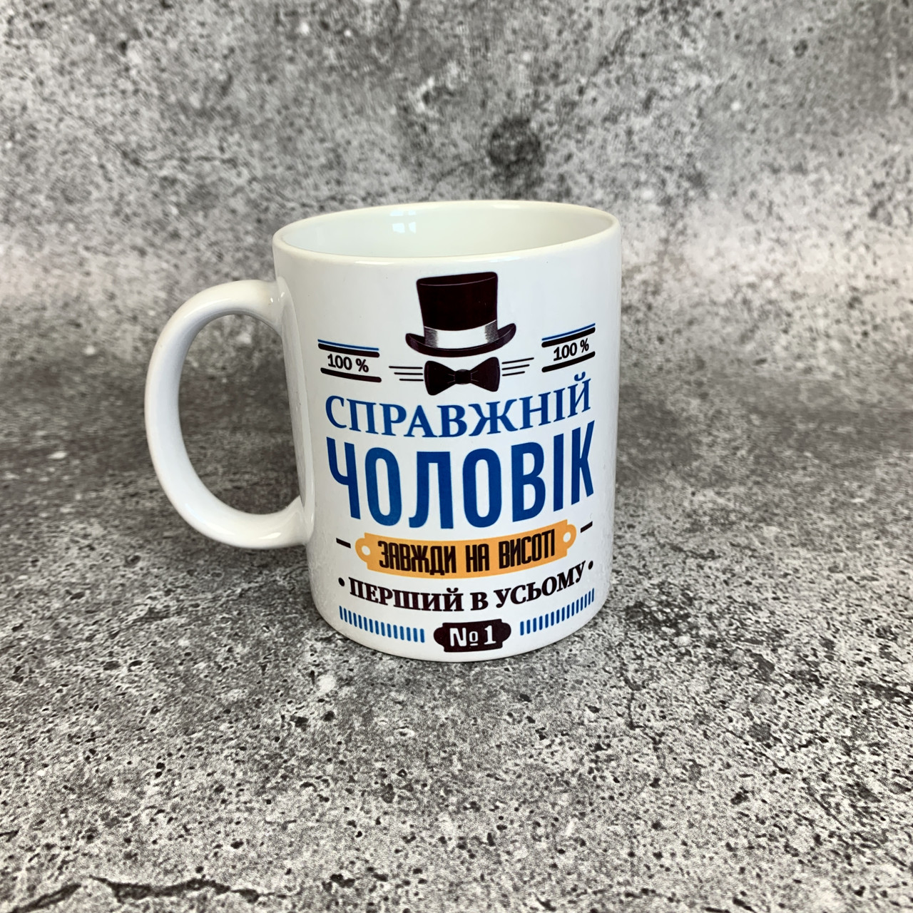 Подарунок чоловіку, коханому,захиснику. Чашка керамічна з надписом справжньому чоловіку 330мл з подарунковою коробочкою.