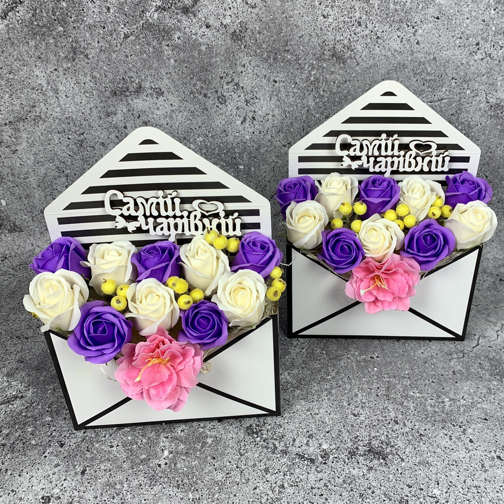 Букет в конверті з мильних троянд. Букет із мила. Подарунок мамі, вчительці, подрузі, дружині